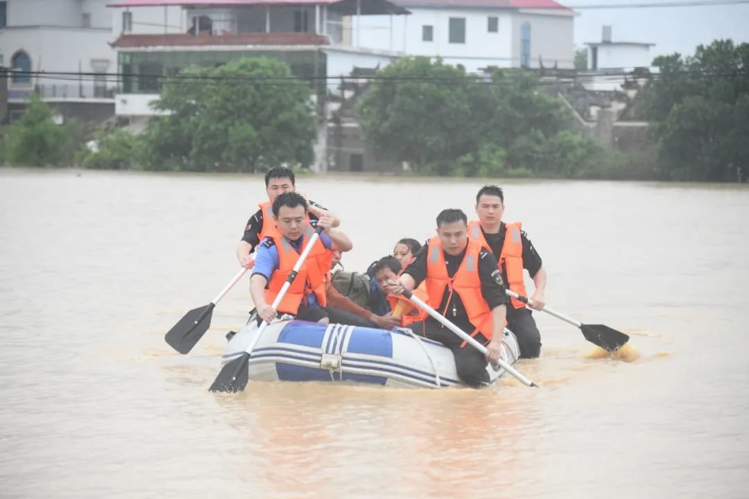 丰城公安紧急抽调200余名警力携带冲锋舟、救援车辆、救生衣等装备赶赴救援一线,开展群众转移疏散、被困人员搜救和抢险救援车队交通保障等工作。