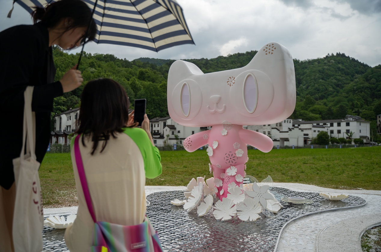 在景德镇活动现场,由天猫与富玉合作打造的玲珑瓷猫装置,以其精致的工艺和非凡的美感成为了各大媒体和游客们瞩目的焦点。