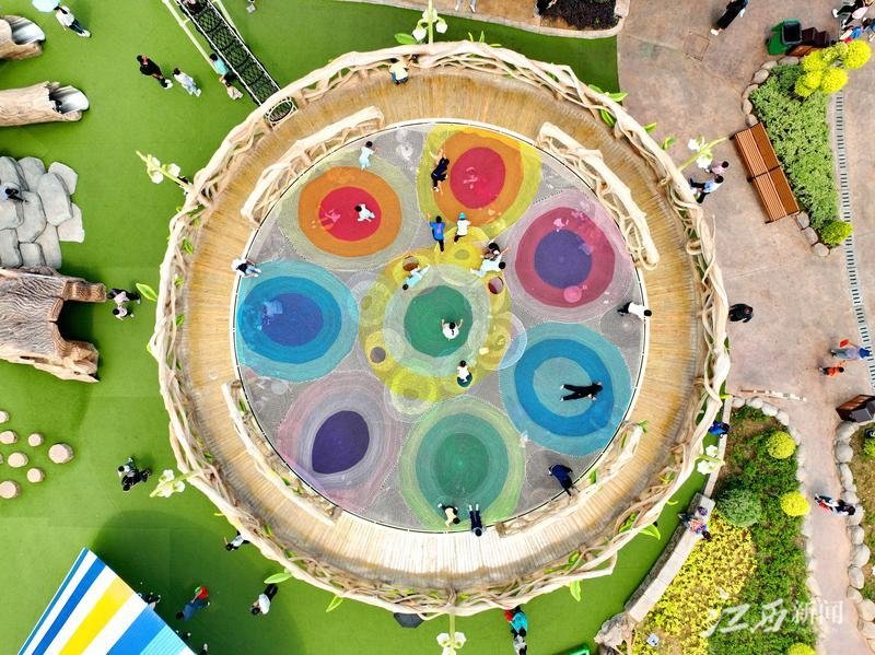 5月13日,赣州蓉江新区潭东镇迳背村“米花谷”儿童乐园里,许多家长带着小孩趁着周末闲暇时间前来游玩,观赏独特的乡村田园美景。特约通讯员 朱海鹏摄