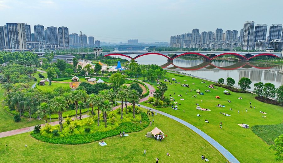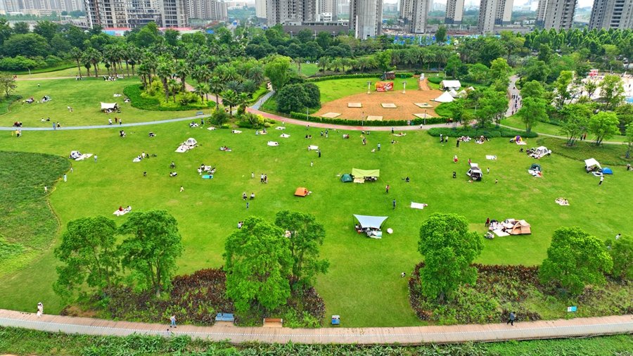 近日,在赣州蓉江新区滨江公园,许多市民支起帐篷铺好餐垫围坐一起,享受惬意的夏日生活。入夏以来,越来越多市民选择在开放式公园和户外绿地体验“打卡”,开启“微露营”“微旅游”休闲方式,亲近自然、融入自然,乐享健康生活。特约记者朱海鹏 摄