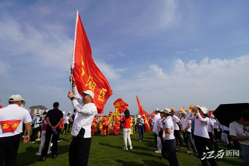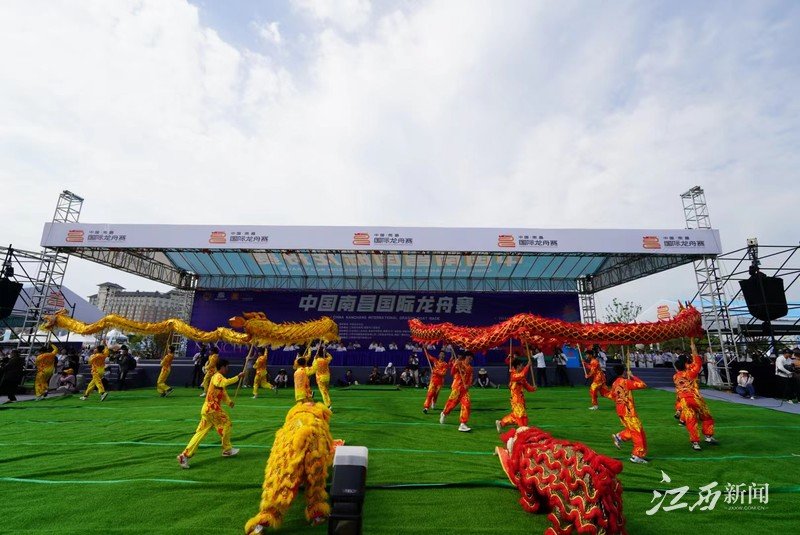 随着主持人的解说,一艘艘龙舟乘风踏浪而来,充分展现出同舟共济、团结拼搏、奋勇争先的精神。开幕式现场,惊险刺激的跳伞表演、朗朗合颂的《滕王阁序》、热火朝天的舞龙舞狮……展示了南昌的深厚传统文化魅力与城市活力,用科技感、速度感和观赏性为观众带来一场视觉盛宴。开幕式结束后,来自海内外各地的22支队伍,将角逐22人大龙舟500米联合对抗赛冠军。