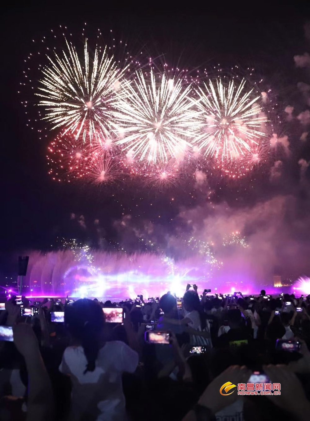 现场精彩不断,在“微博”“抖音”等平台上,许多网友也实时上传了今晚的精彩画面,引起转发和热议。此次水幕烟花秀作为龙舟赛的系列文旅活动之一,有效地集聚人气,向外界展现了南昌的城市活力与魅力, 进一步唱响南昌城市品牌。(全媒体记者 吴潇远/文 成奔/图)