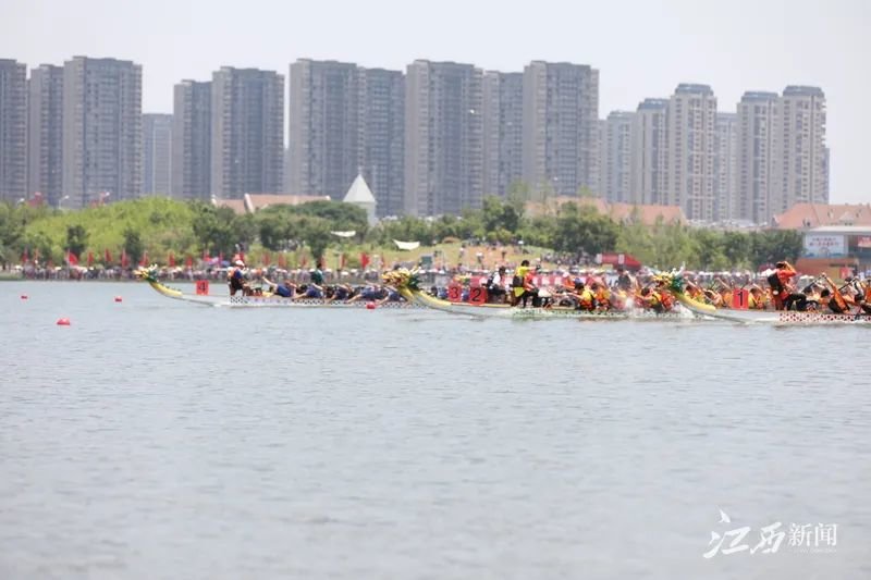 6月10日,南昌市红谷滩区九龙湖两岸锣鼓喧天、热闹非凡。当日,中国南昌国际龙舟赛在此开赛。