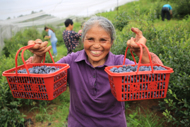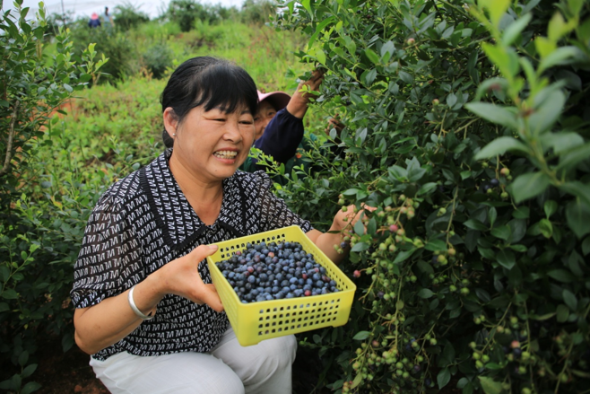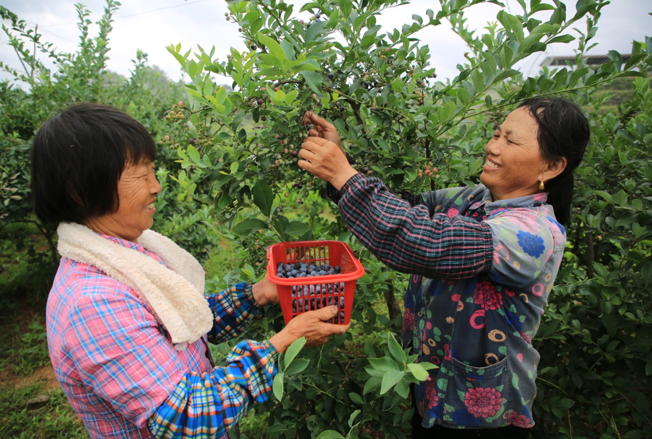 近日,永新县象形乡黎江村贝加尔河生态农业蓝莓种植基地的蓝莓陆续成熟,村民忙于采收供应市场。