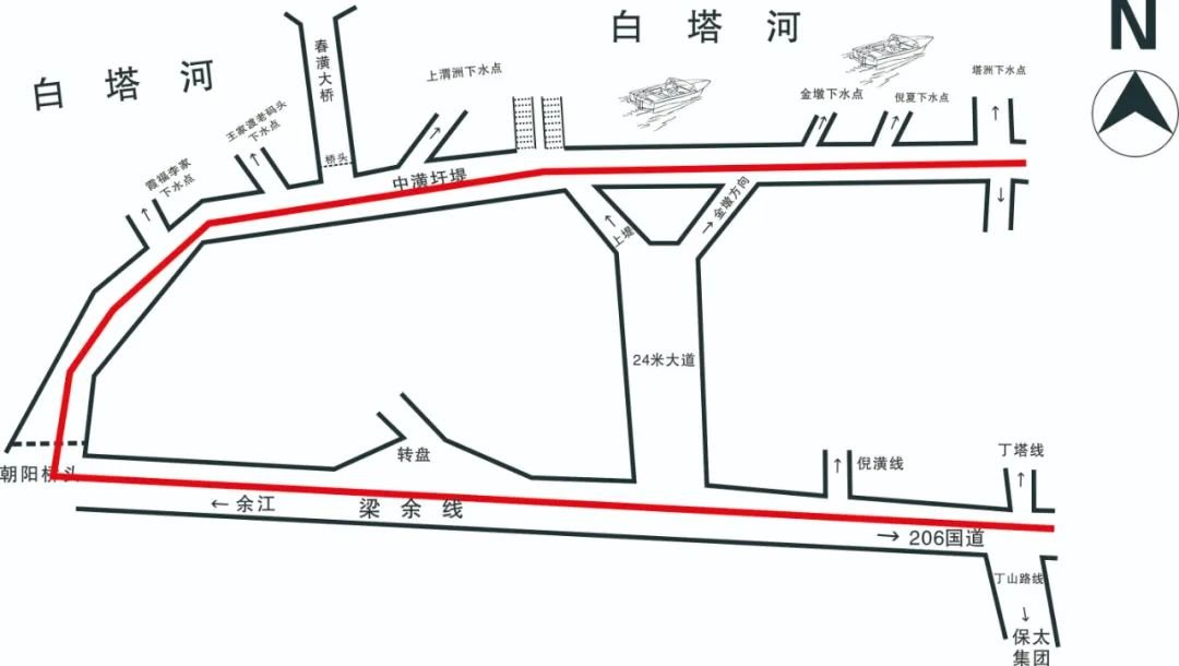 中潢圩堤(自潢溪朝阳桥路口至潢溪渡口洞门底陈家);春潢大桥、梁余线(朝阳桥头至梁余线与206国道交界处);春潢圩堤至渡口小学路段。