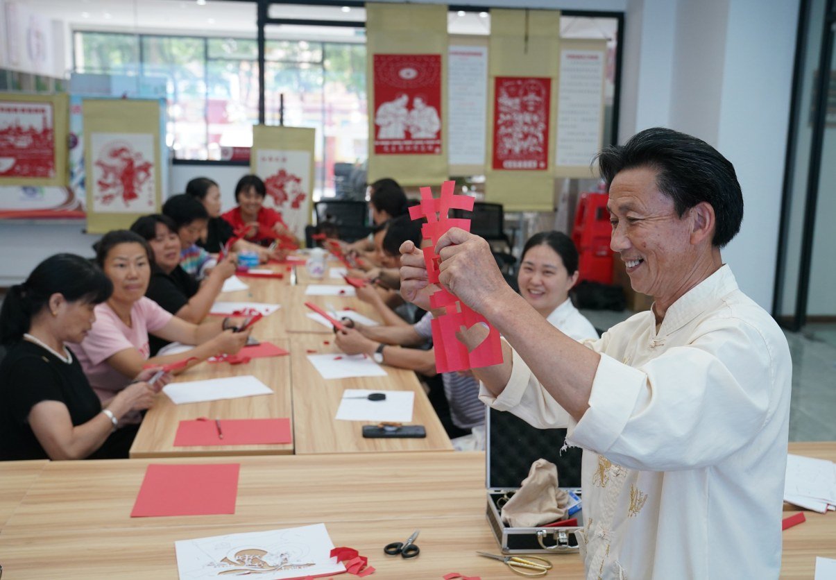 6月15日,渝水区袁河街道丽竹社区开展“学非遗迎端午”特色文化主题活动,邀请非遗剪纸传承人昌新保为居民传授剪纸艺术,弘扬当地特色民俗,传承中华优秀传统文化,迎接端午节的到来。