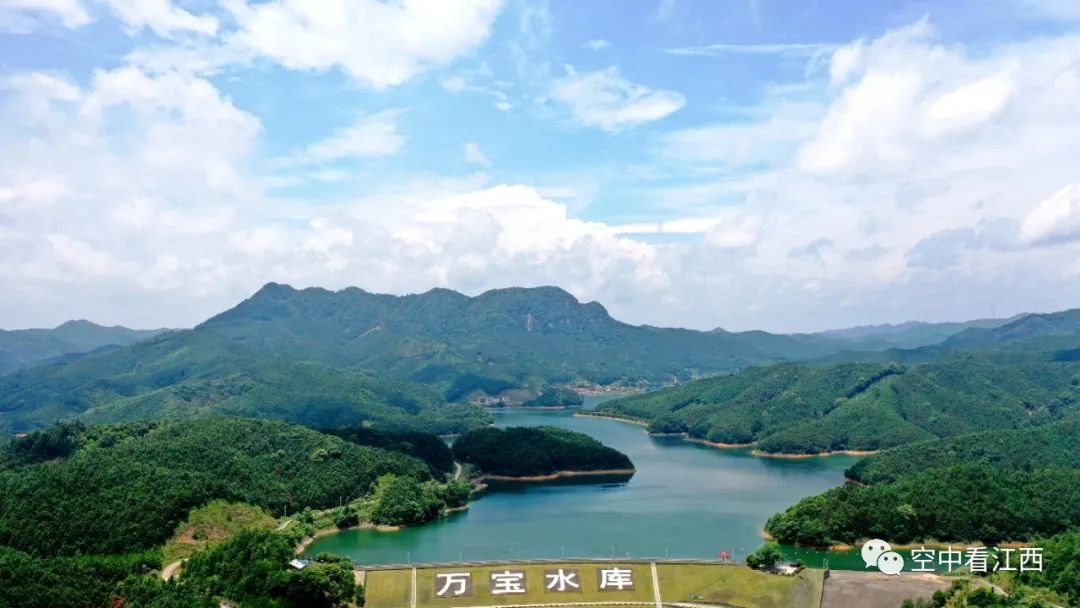 6月20日,航拍江西吉安峡江县金江乡庙下村万宝水库,只见蓝天白云之下,一汪碧水被青山环绕,星罗棋布的岛屿与成片的绿色植被互相映衬,呈现出一幅秀美生态画卷。