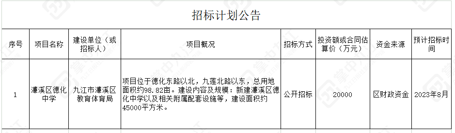 濂溪区德化中学项目即将公开招标
