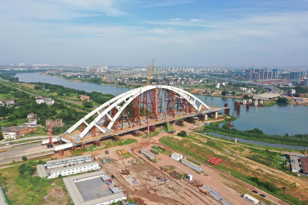 “桥梁一方面受地理环境位置限制,处于章江内河,下游河道多船闸,大型浮吊无进场条件;另一方面,采用提篮式结构,钢结构主跨220米,矢高55米,桥面宽度达到43米,结构物加工精度要求高、安装技术难度大。”蓉江新区建投公司业主代表陈建辉告诉记者,下一步将继续努力克服困难,在保证安全质量的前提下,加快进行主桥油漆补涂、主桥带拱顶推等施工。