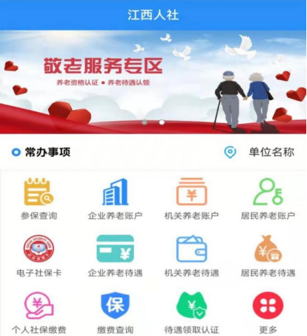 ◆“江西人社”首页,点击最上端红色敬老服务专区(如图):