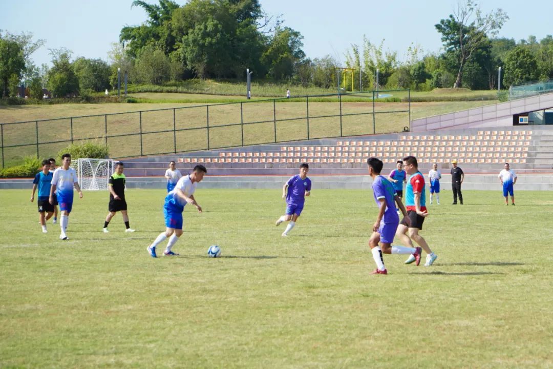 足球赛场上,绿草如茵,区足协足球队和中青联足球队的球员们默契配合,迎球、传切、射门,动作行云流水,局势瞬息万变,紧张激烈的战况让观众大饱眼福,直呼过瘾。赛事正酣,双方队伍实力强劲,处于伯仲之间,经过激烈的角逐,最终1:1打成平局。