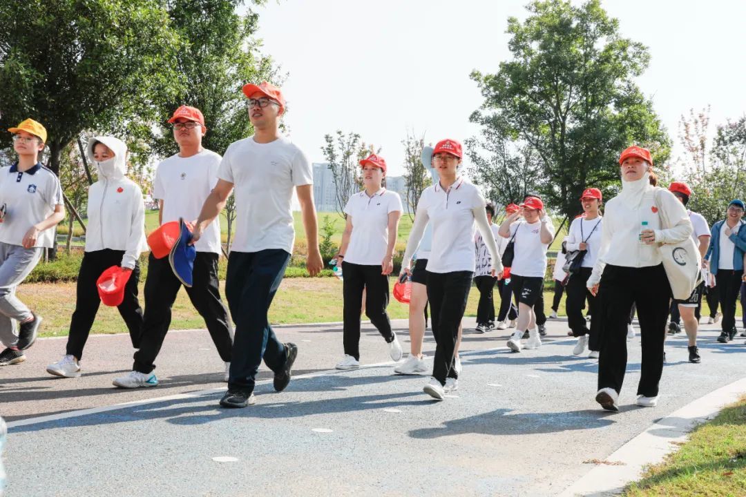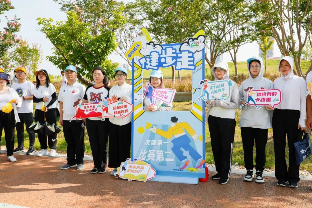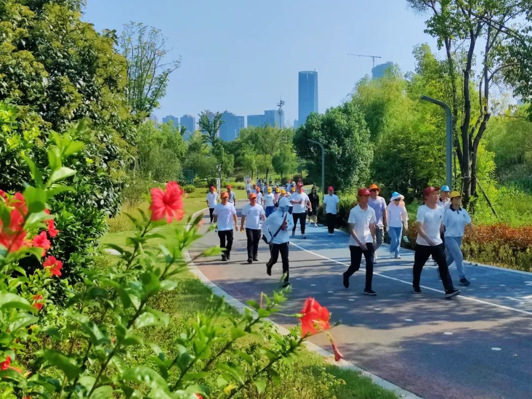 健步走活动中,运动员们健步如飞,在动力加油站参加健康素养知识竞答,获取水和饮料。“生命不息,运动不止”,一张张笑脸上洋溢的是对运动的热爱,运动员们在健步走的同时,还能观赏着公园美景,沉浸于新世纪公园清新的绿意。