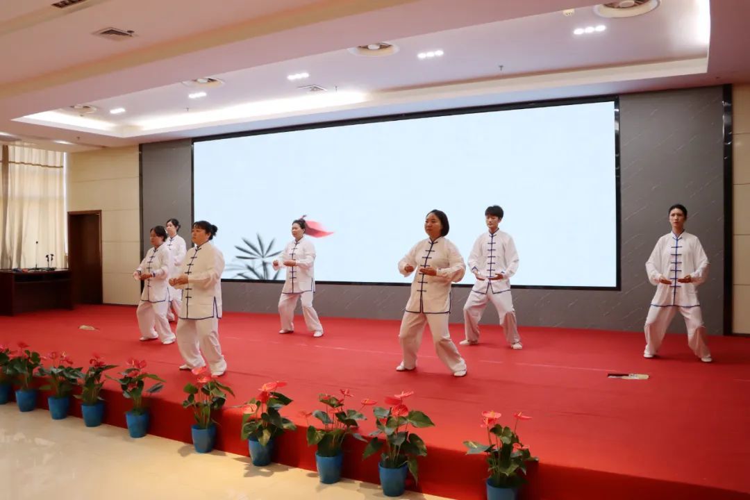 本次活动邀请到九江市健身气功协会副主席胡春燕和濂溪区气功协会的老师们到现场指导、观摩和交流。来自全院各基层党支部牵头组建的13个参赛队这里一展英姿,展示他们开展八段锦习练活动以来的训练成果。