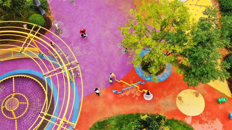近日,定南县凤凰国际广场小游园,市民在健身娱乐。近年来,定南县采取见缝插绿、拆违建绿等方式,因地制宜新建、改扩建一批集健身、休闲、景观为一体的街旁绿地、街头游园,构建城市公园绿地十分钟服务圈。特约记者詹继成 通讯员杨文婷 摄