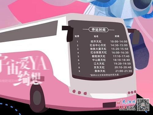 据悉,“心动巴士”停靠时间为上午10:00至晚上9:30,从经开天虹始发、终点站为奥体天虹,游客可在南昌的9个天虹商场门口乘车,途经绿地双子塔、南昌大桥、八一广场、中山路等景点,中途随停随下。乘车途中,游客可在约会的同时欣赏沿途美景,车内“宇航员”将不定时派赠礼品,七夕当日还将派赠红玫瑰,还有机会邂逅巴士音乐会、聆听心动演唱,浪漫氛围拉满。