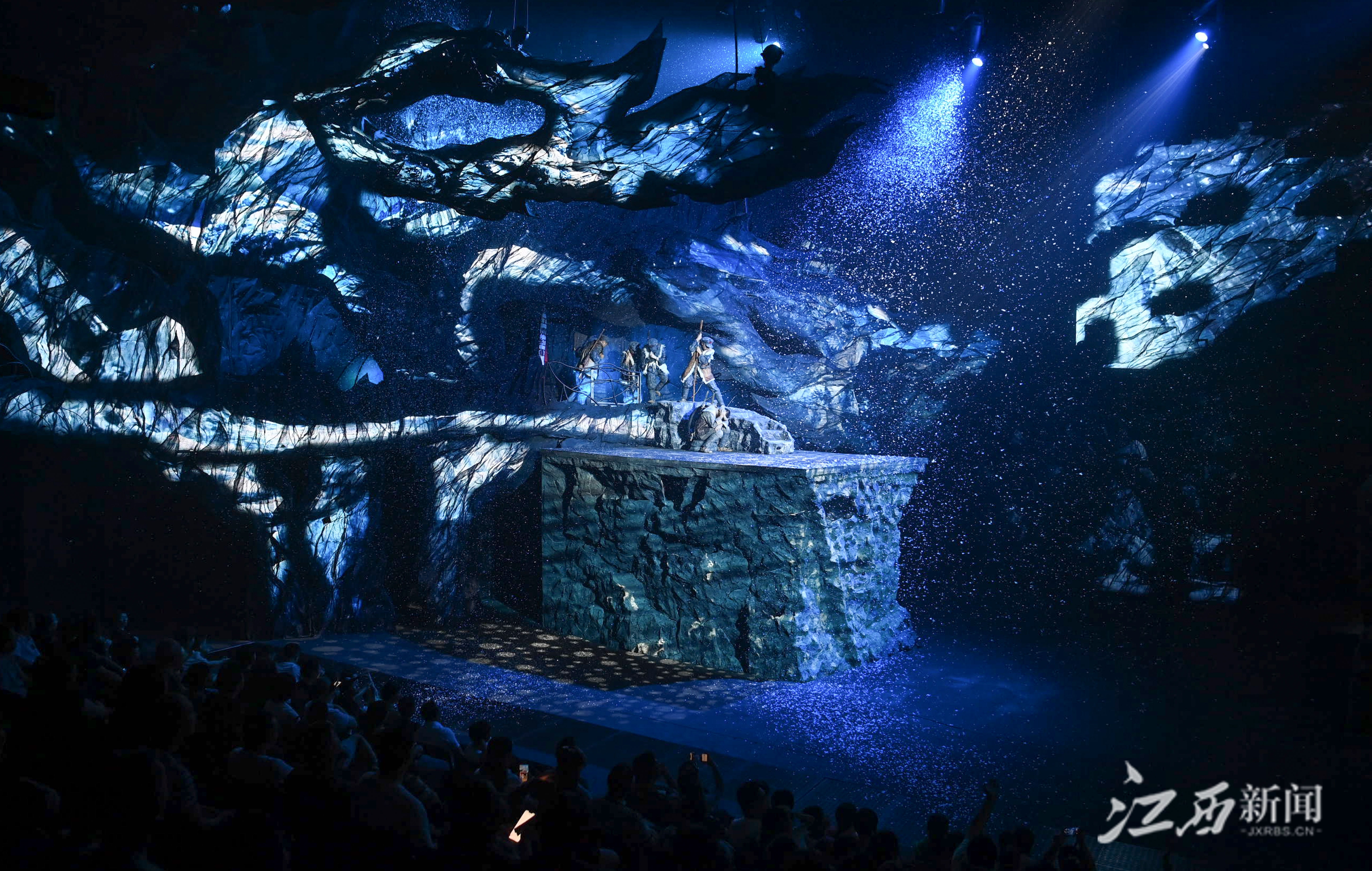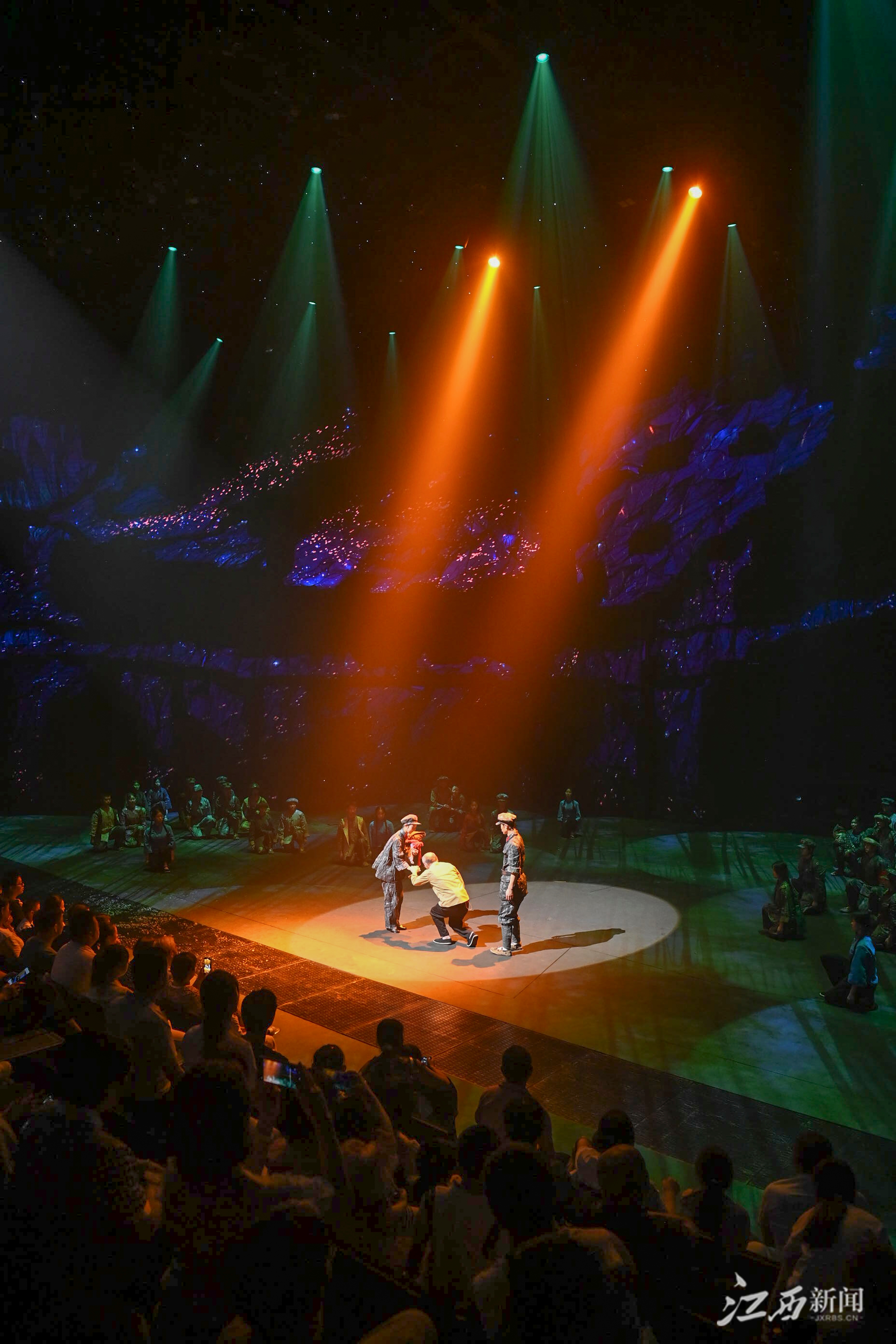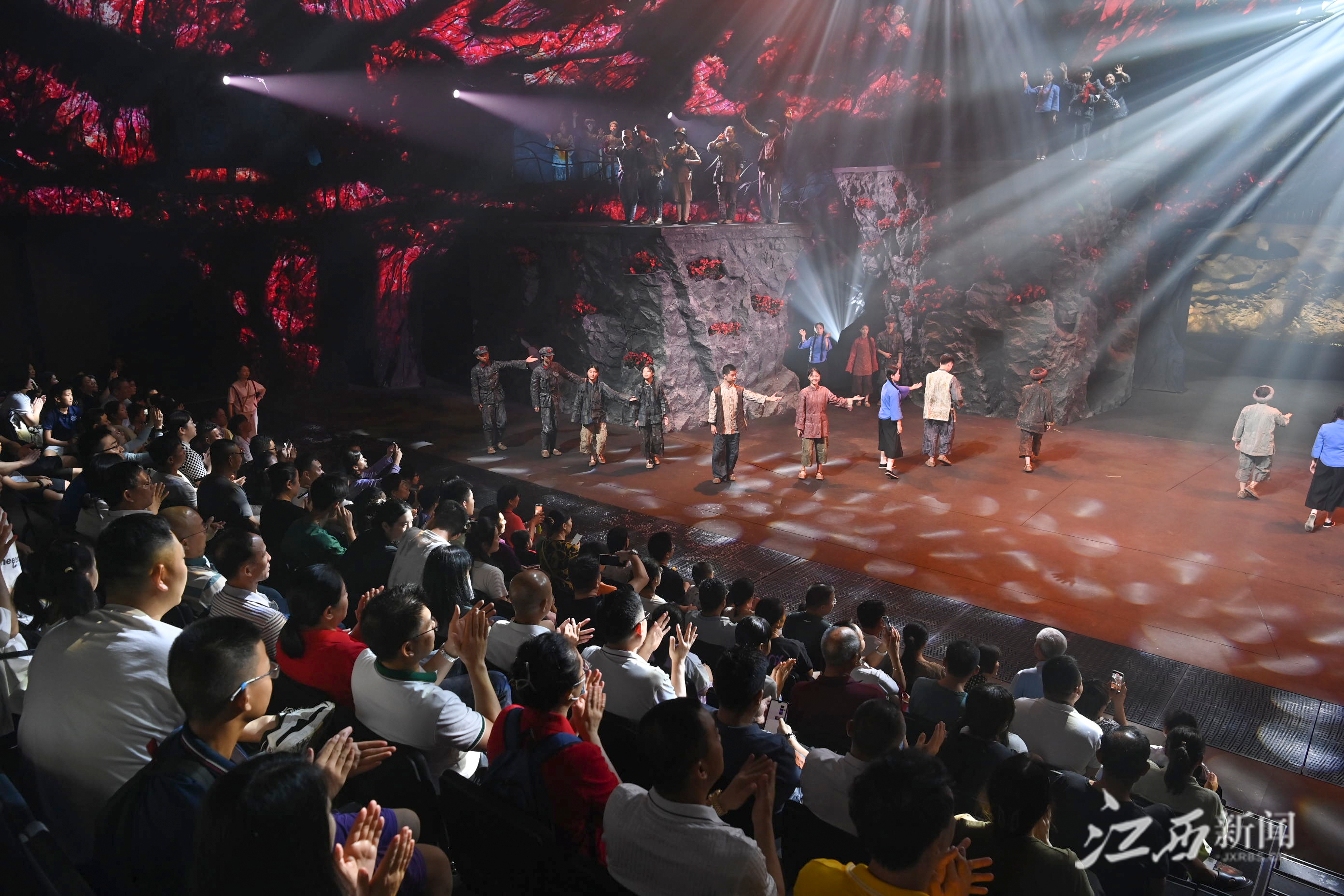 江西新闻客户端讯(江西日报全媒体记者李劼)8月19日晚,在井冈山大会堂,众多游客观摩红色主题戏剧演出。暑期临近尾声,井冈山市红色旅游仍持续火爆,通过挖掘文旅特色资源,打造国内首部原创戏剧秀《星火》沉浸式红色主题演出等方式,文化和旅游同频共振,促进了文旅消费市场的加速回暖,前往参观体验的游客络绎不绝。