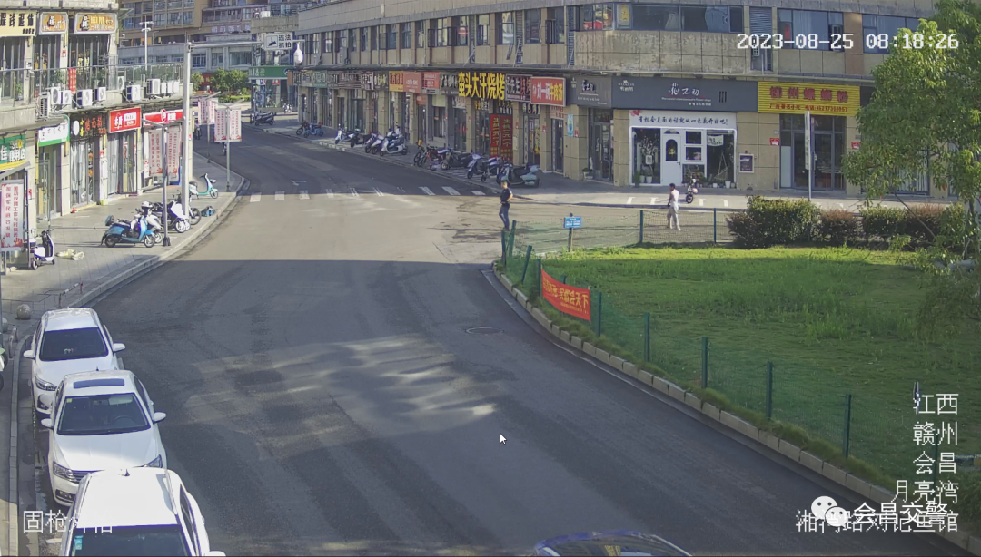 2023 年 8 月 25 日 8 时 18 分许,两名施工工人一前一后共抬着一根 5 米多长的钢管,出现会昌县新天地路段。他们由东往西横跨通过道路,这时路上一名骑车的女子由北往南经过,未能注意到两人抬着过街的钢管,迎头撞上,随后连车摔倒在地。