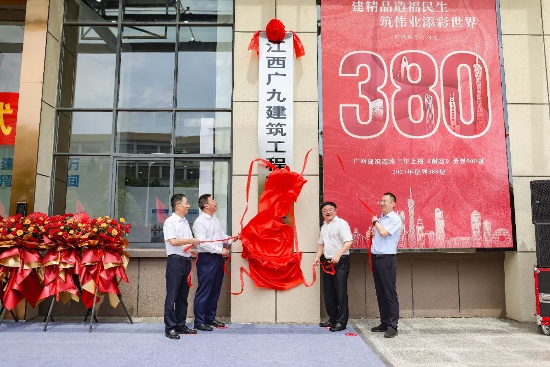 9月10日,江西广九建筑工程有限公司揭牌仪式举行。广州市建筑集团有限公司党委书记、董事长梁湖清,广州市建筑集团有限公司总法律顾问朱小林,广州市第三建筑工程有限公司党委书记、董事长冯文锦,广东揭阳建工建设集团有限公司党委书记、董事长易春生,九江市政府副市长容长贵,九江市住建局局长刘胜,九江市城市发展集团有限公司党委副书记、总经理袁立,瑞昌市市委书记陈琪,市委副书记、市长魏堂华,市人大常委会主任梁少清,市政协主席周洪文,市领导余平、范辉、鄢俊彬参加相关活动。