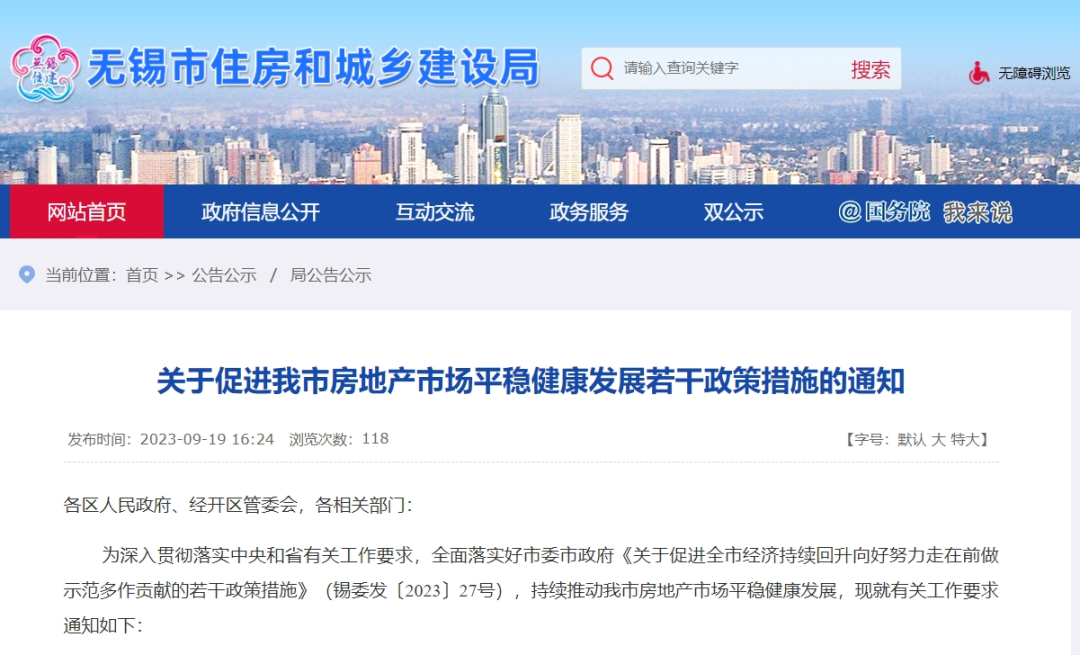 此外,无锡市也在当天发布了《关于促进我市房地产市场平稳健康发展若干政策措施的通知》,其中提到: