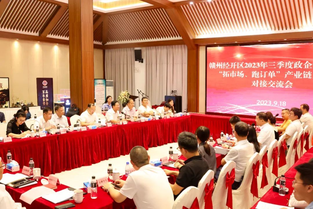 9月18日下午,赣州经开区召开2023年三季度政企圆桌会暨“拓市场、跑市场”产业链上下游对接交流会,通过政府“牵线搭台”、企业“牵手合作”的形式,实现面对面对接供需、点对点纾困解难,全力以赴帮助企业“拓市场、跑订单”。
