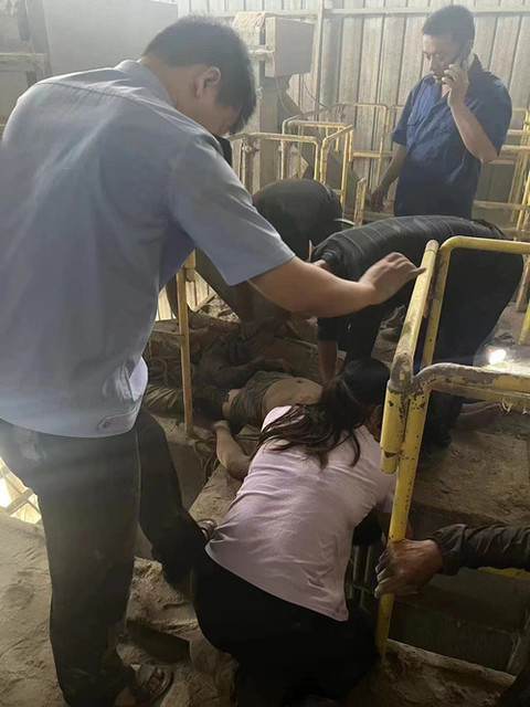 到达现场后,3名被烟气熏晕的群众被困在谷仓顶部,民警立即爬上谷仓顶部开展人工呼吸心肺复苏等急救工作。在120急救人员到达后,民警又帮助医生将氧气枕运上谷仓顶部。