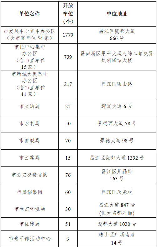市机关事业单位(含驻景部省属机关事业单位)内部停车场凡具备开放条件的均列入开放范围,因保密、安全、存放危险物资的场地、校园内部等不宜对外开放的场所,可不对外开放。
