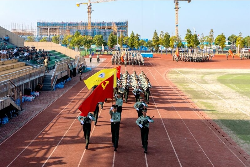 院长宁洁下达军训分列式开始的命令。