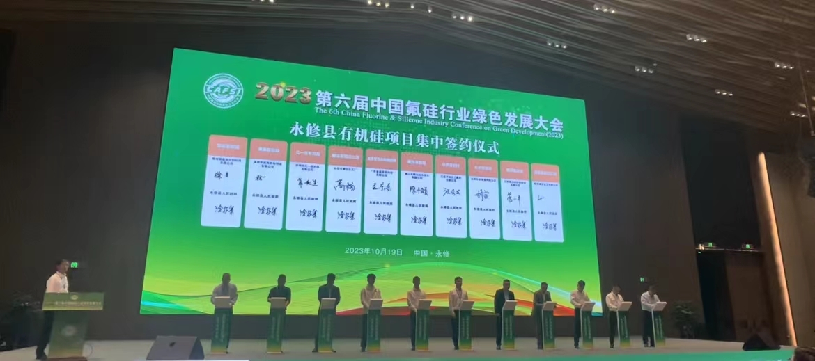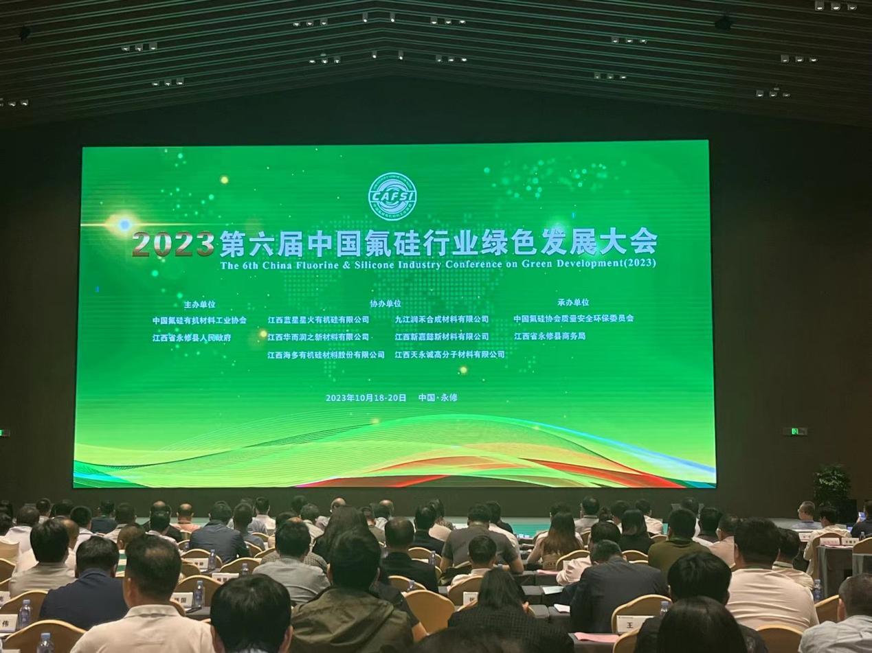10月19日,2023第六届中国氟硅行业绿色发展大会在九江永修召开。此次大会立足于弘扬氟硅行业绿色健康高质量发展理念,以“科技创新推动氟硅行业绿色低碳高质量发展”为主题,以行业权威专家学者、资深企业家等为依托,邀请政府相关部门、智库专家和业内精英,氟硅协会会员代表等近500多位代表,就双碳目标下氟硅行业发展路径分析、产业链安全构建、绿色循环经济等议题,围绕行业关注的热点应用展开讨论。