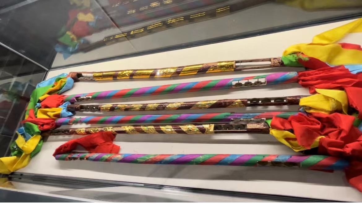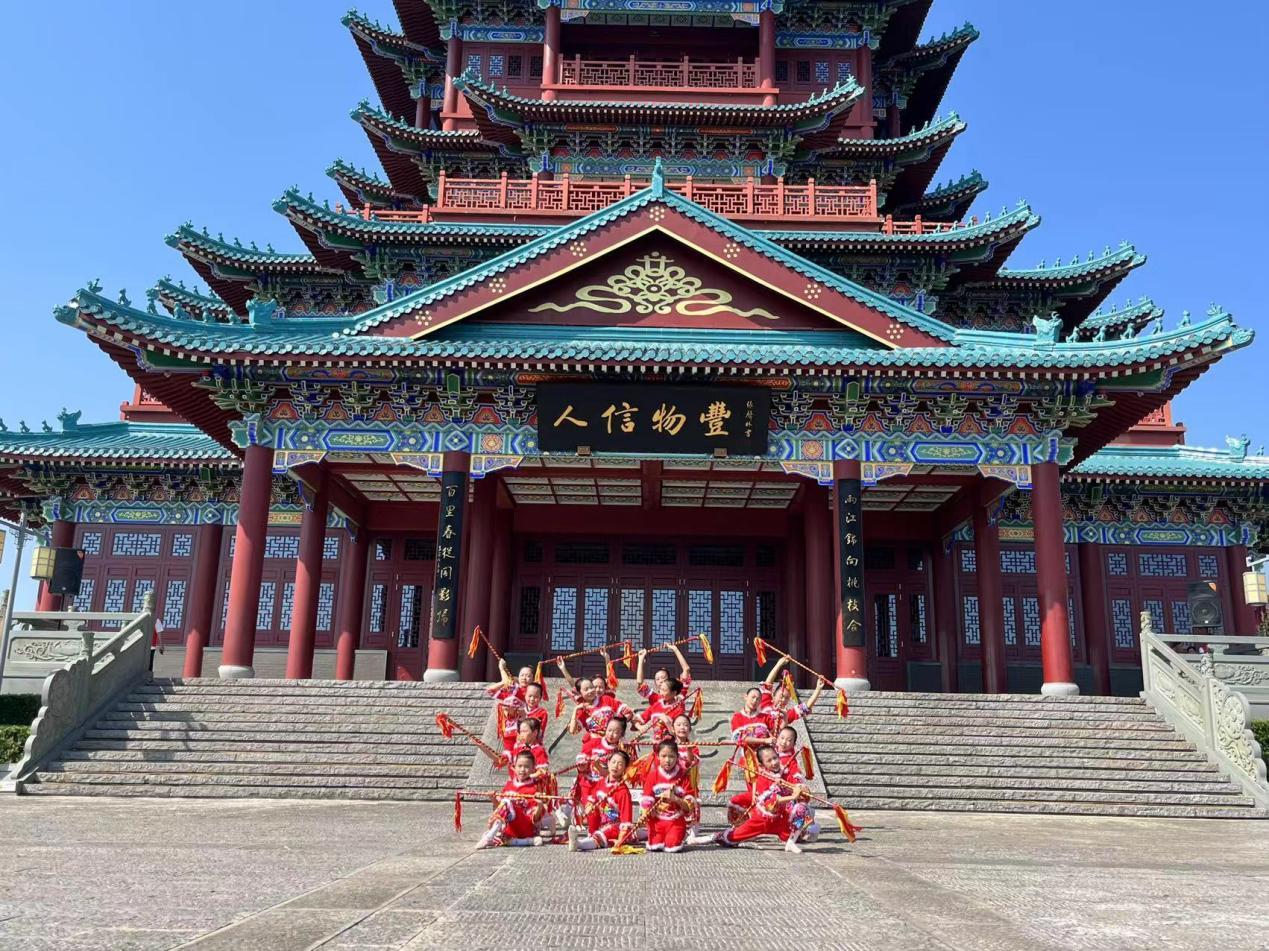 信丰铜钱花为市级非物质文化遗产,其以道具独特、观赏性强而独具韵味。铜钱花的表演道具为一根长约一米的细竹竿,竹竿两头掏空,各镶有铜钱10多枚,表演时演员舞动竹竿,和着音乐节拍,敲击手、肩、腿、脚等部位,做出相反而又对称的舞姿,让竹杠上的铜钱有节奏地与音乐节拍融和,配合舞姿同步并行,因此称为“铜钱花”。(图片均由 信丰县委宣传部提供)