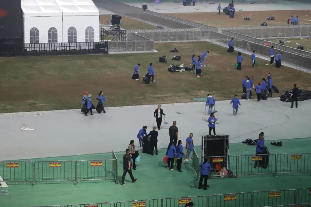 为给观众游客营造良好的观演体验,活动提前发布交通出行提示,对公交、地铁、自驾车、大小货车等车辆进行分流指引,增设两处停车区域约4600个停车泊位。在现场井然有序的交通疏导与悉心周到的进出场保障下,观众检票入场、退场规范有序,未出现拥挤、围堵、踩踏现象,未发生一起安全事故。演出结束后,迅速疏散所有观众,充分展现出组织水平和市民游客文明风貌。同时,针对场馆看台、内场区域保洁等,实施了精细化、高效率的保洁方案。