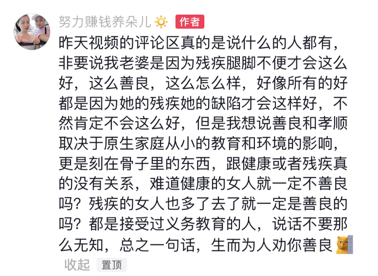 徐玲玲:“我爸爸回家要走10分钟的路去坐公交,下车之后还要走半小时的路,只要我老公在家,都会送爸爸回家。有时候家里种田 ,也会让我守摊,自己去田里除草,就怕爸爸多走路。”