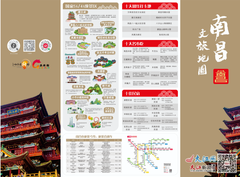 大江网/大江新闻客户端讯 全媒体记者王琴红报道:南昌建城历史两千多年,底蕴深厚,文脉流长,素有“物华天宝,人杰地灵”的美誉。为提升南昌文旅影响力、传播力,打造南昌文旅品牌,近日,南昌推出文旅地图,面向全市景区、星级酒店、民宿、加油站、高铁站、机场等免费发放。