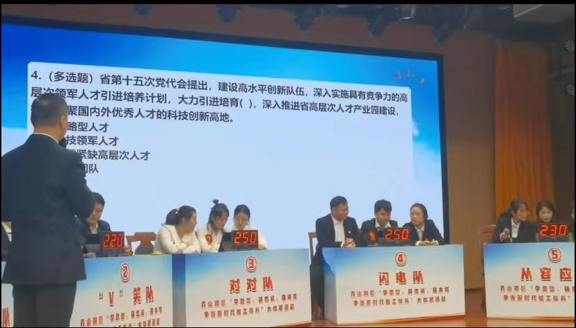 竞赛中,队员们沉着冷静、快速思考、对答如流、得分有招,表现出了扎实的理论功底、丰富的实践真知和昂扬的青春风貌。在必答题环节,参赛队员们稳扎稳打、齐头并进;团队题环节,互相配合,取长补短,集体作战;抢答题环节,比手速,比正确,比分交替上升;风险题环节,激烈热烈,展现判断和智慧,分数差距拉大。选手们以积极的姿态、团结的作风、争先的精神,拼脑力、比手速、斗心理,用智慧对决,用实力比拼,上演了一场超燃的组工知识大比拼。