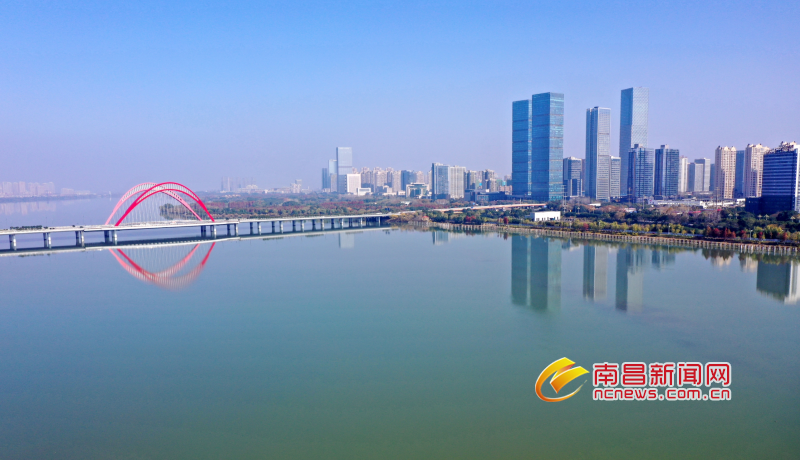 12月14日,航拍下的艾溪湖滨水岸线美如画,为冬日的南昌增添美景。多年来,南昌大力推进湿地修复、水系连通、幸福河湖建设等重点工程,水环境质量持续改善。