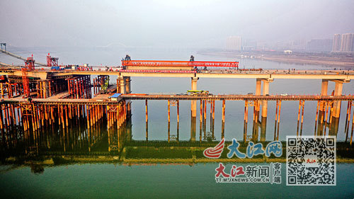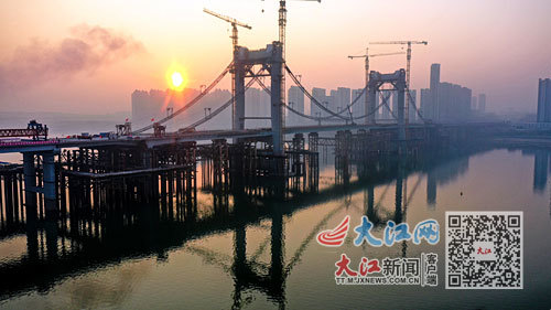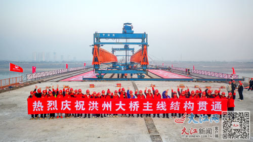 江南都市报讯 全媒体记者许南平摄影报道:2023年12月31日,随着过江段主线最后一片预制T梁稳稳落在33-34号墩支座上,由南昌市政公用集团建设,中铁大桥局承建的南昌洪州大桥过江主线结构顺利贯通,为大桥全面建成通车奠定了坚实基础。