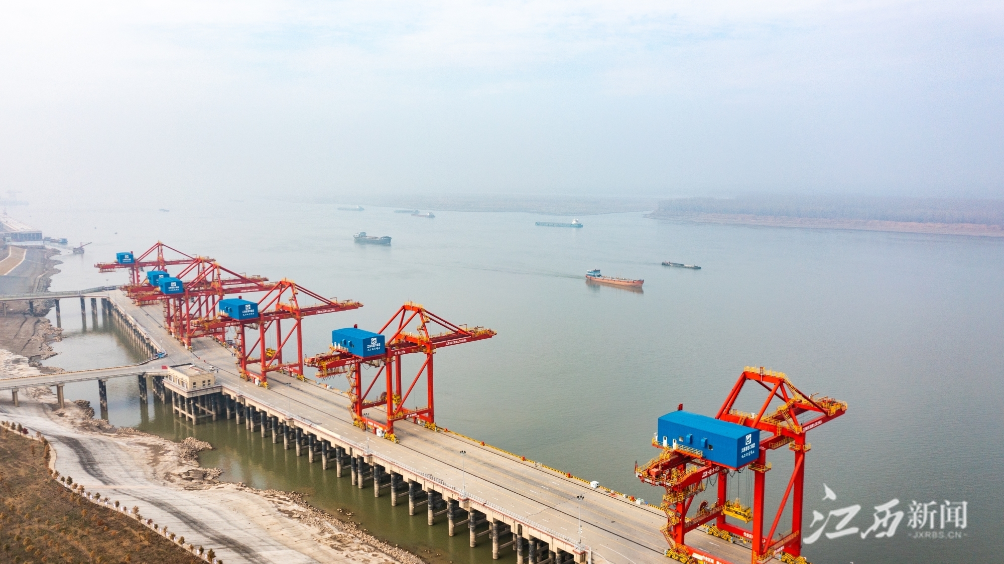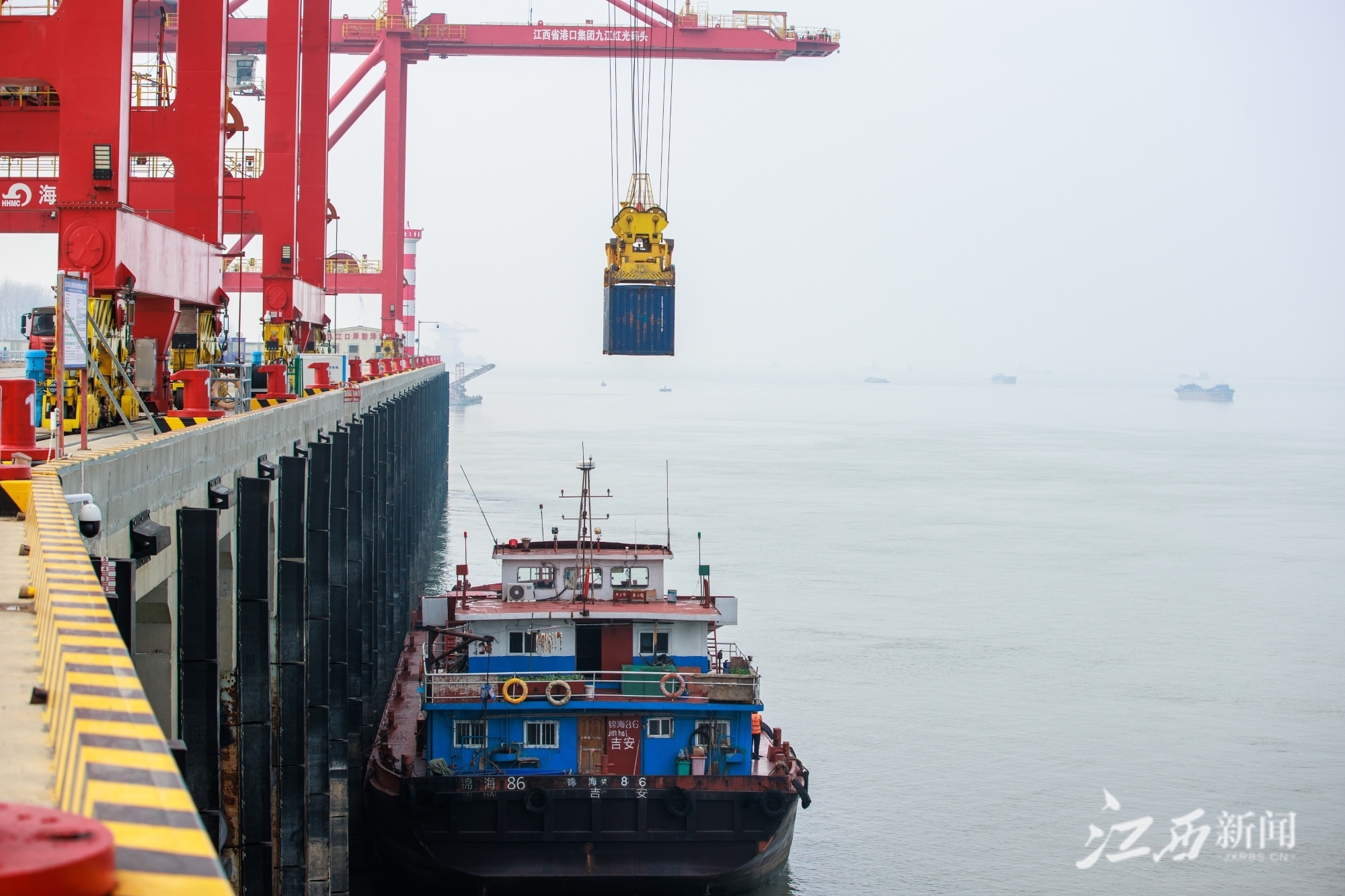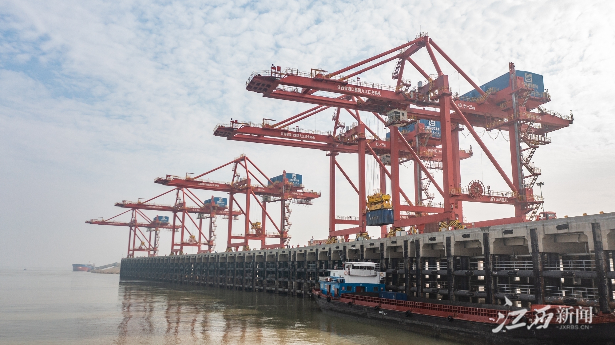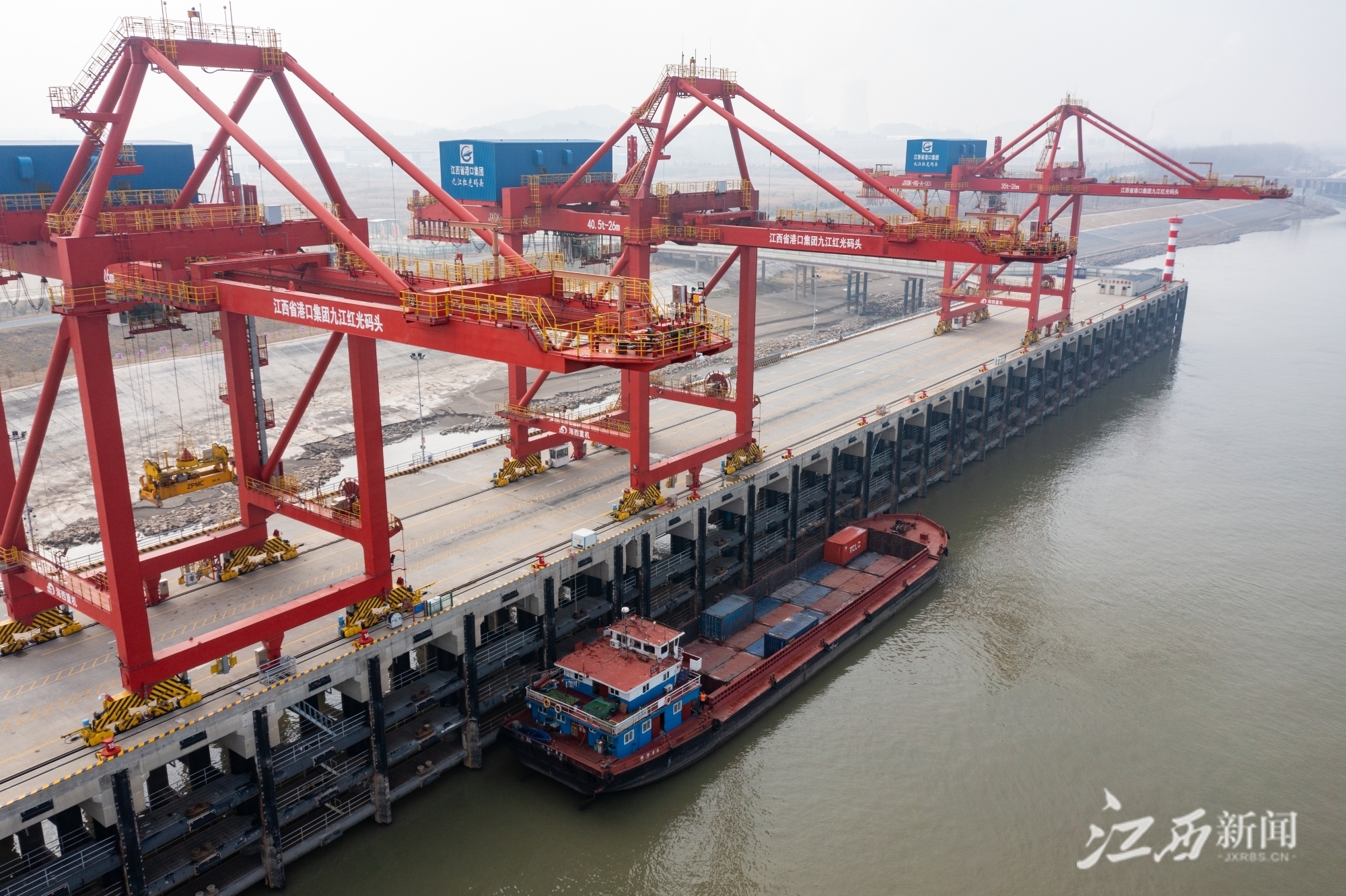 江西新闻客户端讯(江西日报全媒体记者吴文兵 吴福清)1月4日,位于彭泽县的九江红光码头,货船正在装卸货物。彭泽县拥有46.5公里的长江黄金岸线,是货聚九江、赣货浔出的“桥头堡”,畅通的航道、优良的深水岸线以及大面积纵深腹地,为运输吞吐量大、进出口加工型的临港产业提供极大的发展空间。