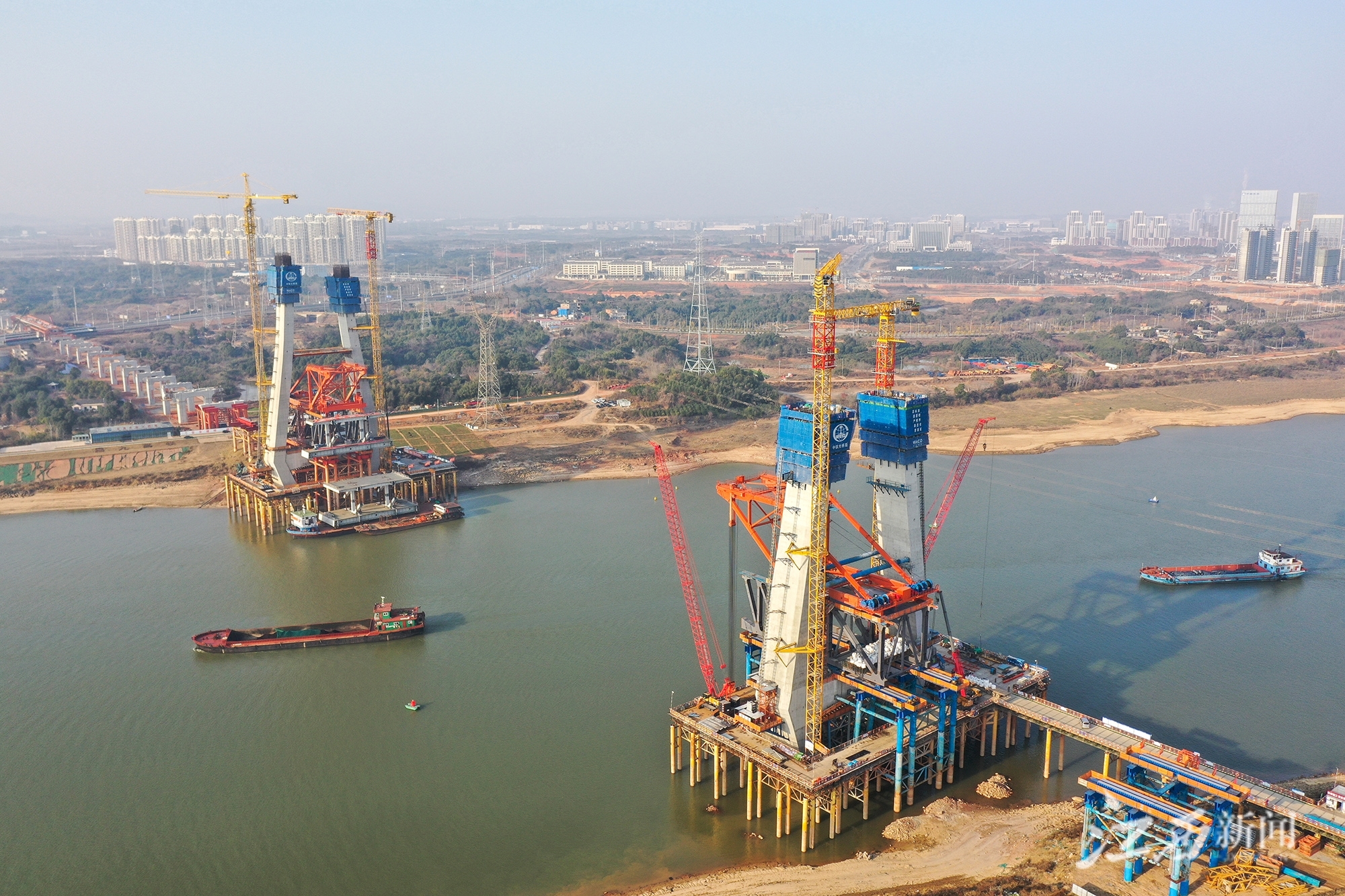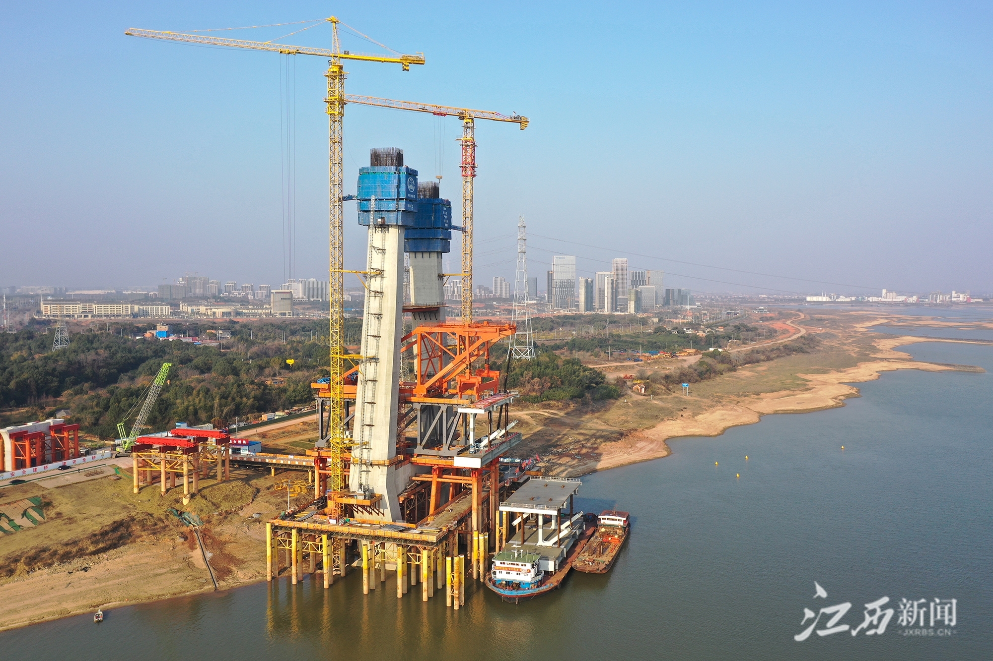 江西新闻客户端讯(江西日报全媒体记者洪子波)1月10日,在南昌市隆兴大桥赣江西支主桥建设现场,塔吊林立、机器轰鸣。随着去年年底首梁架设的顺利完成,该主桥施工进入全面提速阶段。据悉,隆兴大桥集高速铁路、城市快速路、城市主干道为一体,是昌九高铁和北二环快速路跨江共用通道。