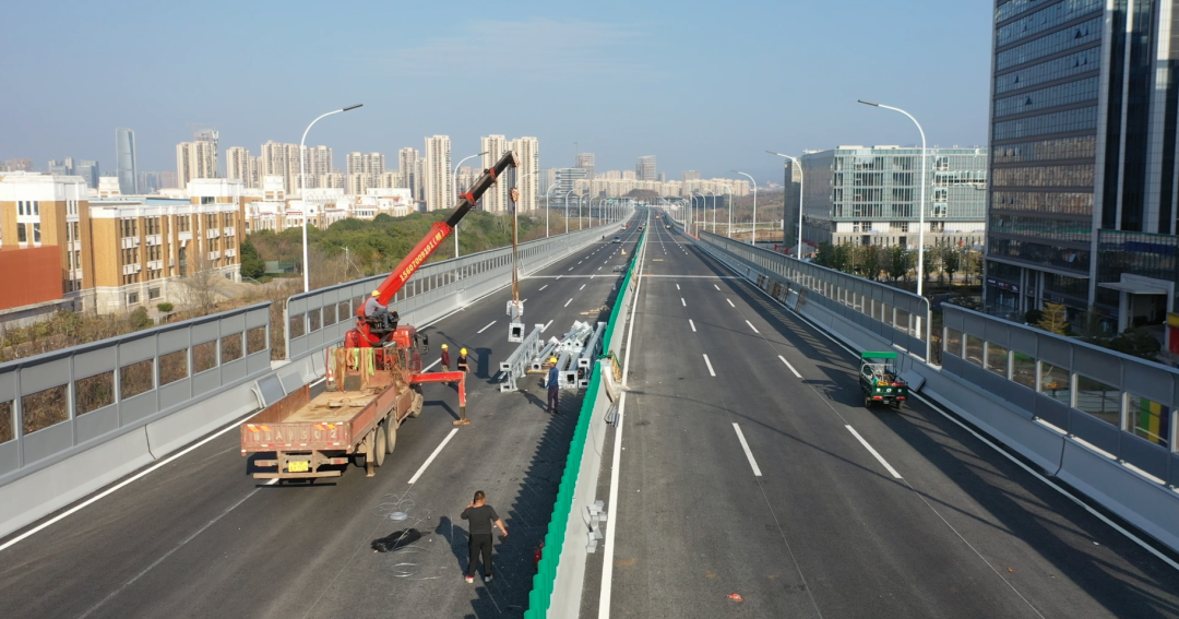 赣州城投集团赣南大道快速路Ⅳ标(蓉江段)项目部经理肖健介绍:“赣南大道快速路四标(蓉江段)全长约10公里,目前正在进行标线划设,声屏障安装,防抛网等收尾工作,预计在春节前主线高架达到通车条件。”