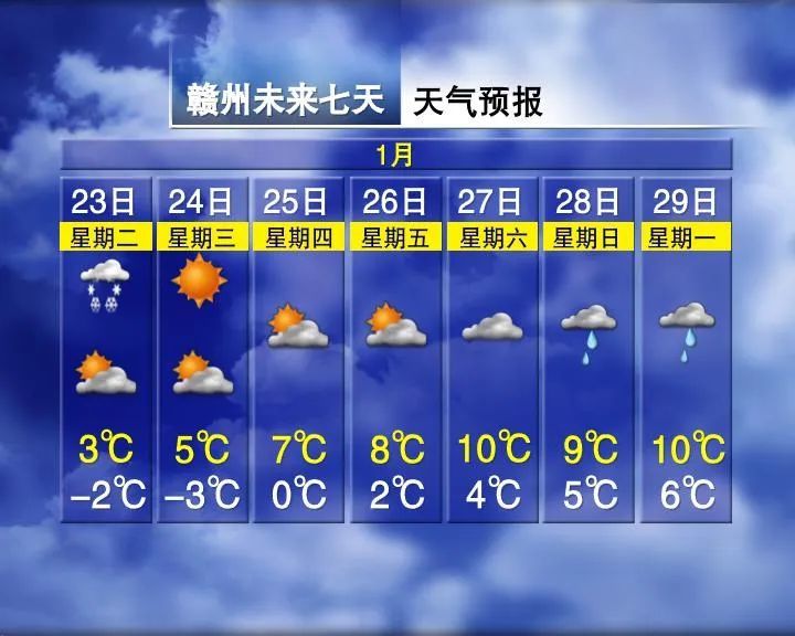 预计,今天强降雪将逐渐南压,其中赣北南部、赣中和赣南北部有中到大雪, 局部有暴雪 ,晚上全省降雪减弱渐止;江湖水面、平原河谷和高海拔山区阵风仍有6级左右;气温继续下降,明后天早晨全省零下6℃~零下3℃,其中赣北赣中局部可将至零下8℃,全省大部分地区有冰冻和道路结冰。25~27日全省为阴冷天气。