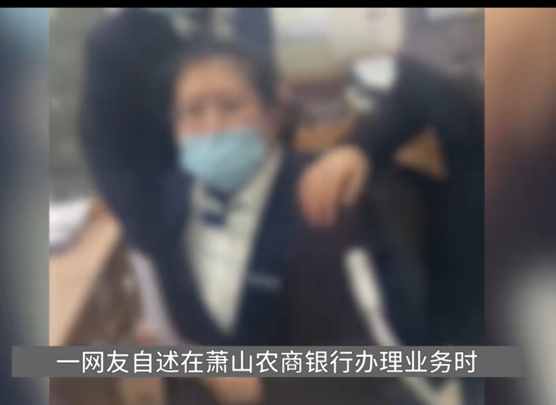 1月22日,网友“老王”自述在浙江杭州在萧山农商银行办理业务时,被柜员多次公开大吼“滚”,并怒摔其资料。其发布的视频显示,柜员确实多次让其滚,甚至提到“你不要以为不会打你”。