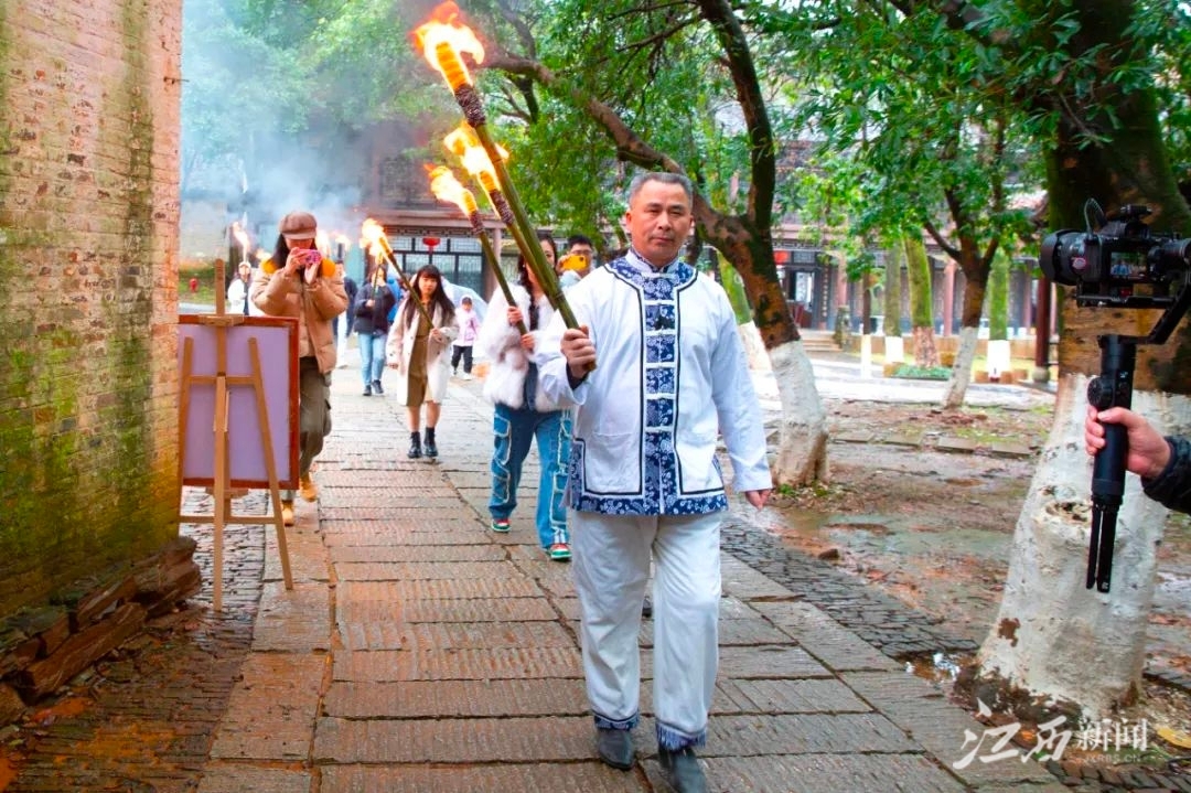 在明清御窑风火窑的复烧点火仪式上,烧窑把桩师傅冯、孙厚英将火把依次传递到嘉宾手中,游客将火把置入窑内,窑火熊熊燃起。本次活动中,该景区还为游客免费发放古窑文创。