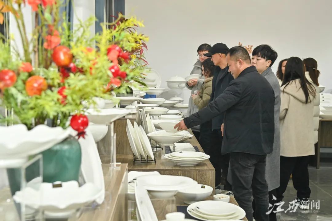 2月12日,在黎川县第一届乡友陶瓷园新品发布会上,春节返乡的在外陶瓷经销人员现场观摩陶瓷新产品。