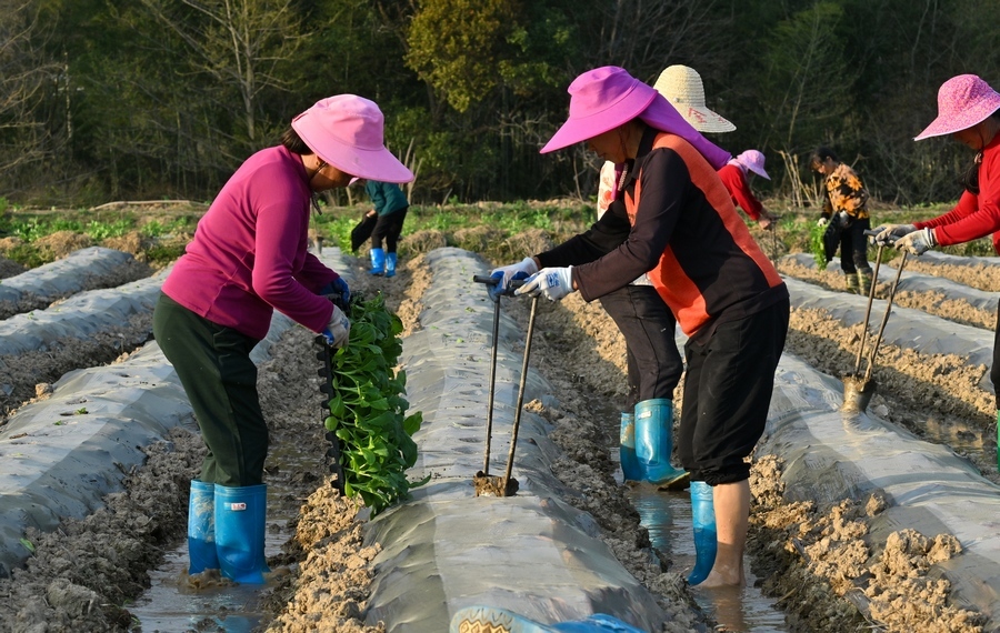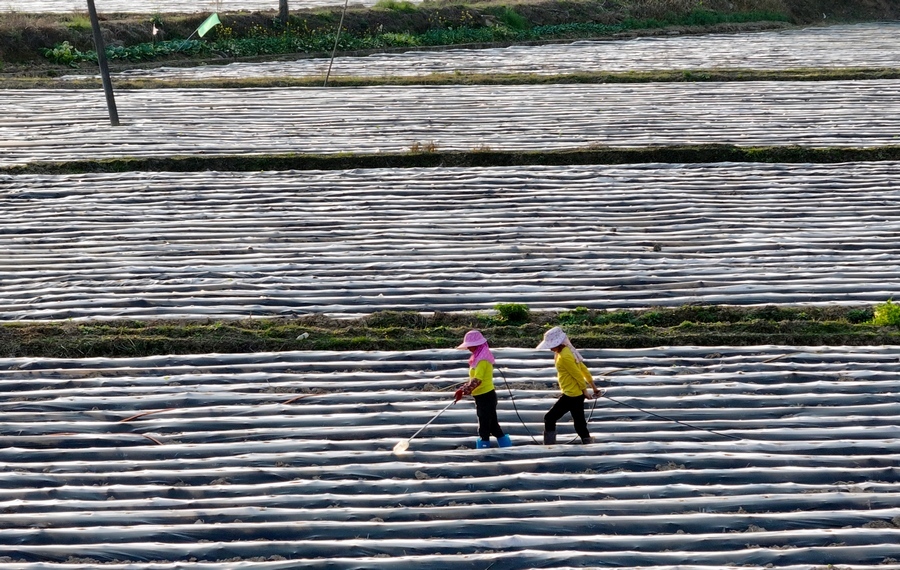 眼下正是春耕农忙时节,2月20日,会昌县站塘乡水明村,烟农们抢抓农时,栽苗、浇水、覆膜……一道道工序有条不紊地进行,烟田里呈现出一派热火朝天的劳动景象,掀起新一年的烟叶生产热潮。(记者肖靓 通讯员汪家伟 萧应涛/图)