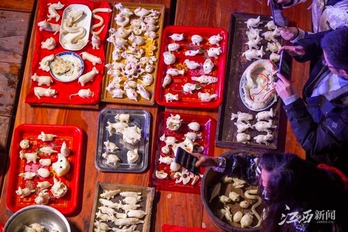 2月23日,都昌县苏山乡苏山村举行传统的赛灯粑活动,庆祝元宵佳节。该村每年元宵节前,家家户户做灯粑赛灯粑,这一习俗至今已有两百多年。灯粑用米粉做成,造型各有特色,有猪、牛、羊等牲畜一类,寓意“六畜兴旺”“五谷丰登”。