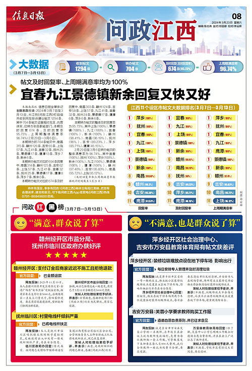 赣州经开区市监分局、抚州市临川区政府办获好评