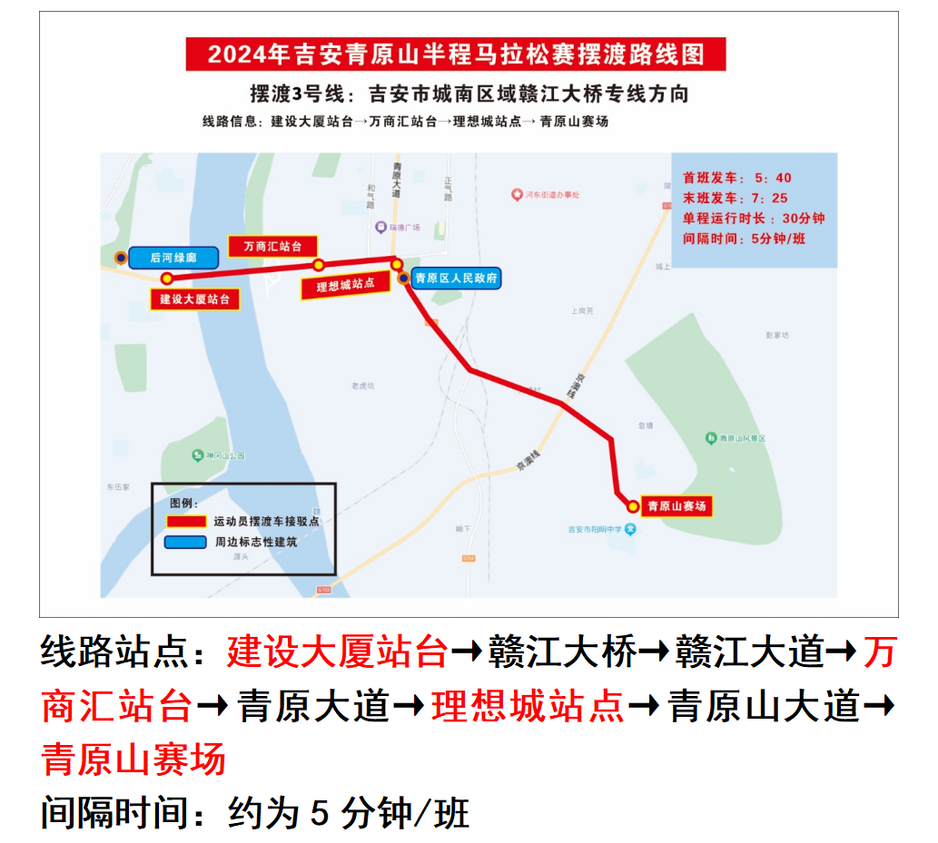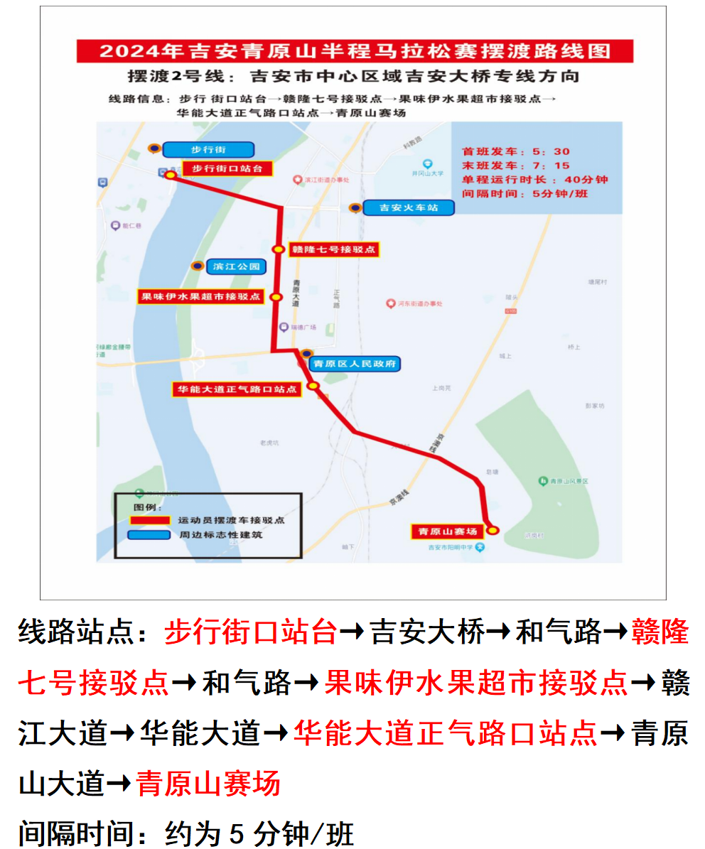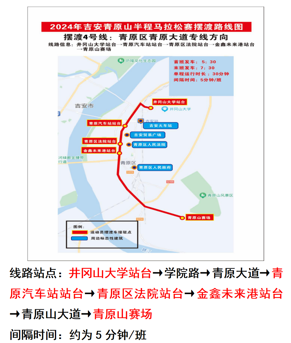 2024年3月31日6时至13时,对上述路段进行临时交通管制,禁止除与赛事相关和社会应(救)急车辆以外的一切车辆通行,在管制路段和赛事管控区域禁止社会车辆停放,吉安市公安局交通警察支队青原大队将根据比赛进展及实际交通情况,及时优化交通管制措施,请广大市民提前掌握交通管制动态及公交线路调整信息,合理规划出行路线及时间。途经交通管制路段的车辆和群众,请按交通标志标牌指引和现场交警指挥通行;请参加比赛的运动员自行前往摆渡公交专线停靠站点(详细公交路线及停靠站点附后)统一乘车,安保人员及其他工作人员按要求前往指定接驳地点统一乘车,不得自行驾车前往比赛场所。前往摆渡站点和接驳点的自驾车辆请停放在公交站台周边的停车场站、停车位内,前往观赛的社会车辆和其他车辆停放在临时停车区域(青原山大道七彩农庄至105国道路段,吉青公路105国道以西路段),做到有序停放,自觉服从交警的指挥、管理。因赛事当天车辆剧增,可能造成部分路段通行缓慢,由此给广大市民带来的不便,敬请谅解!