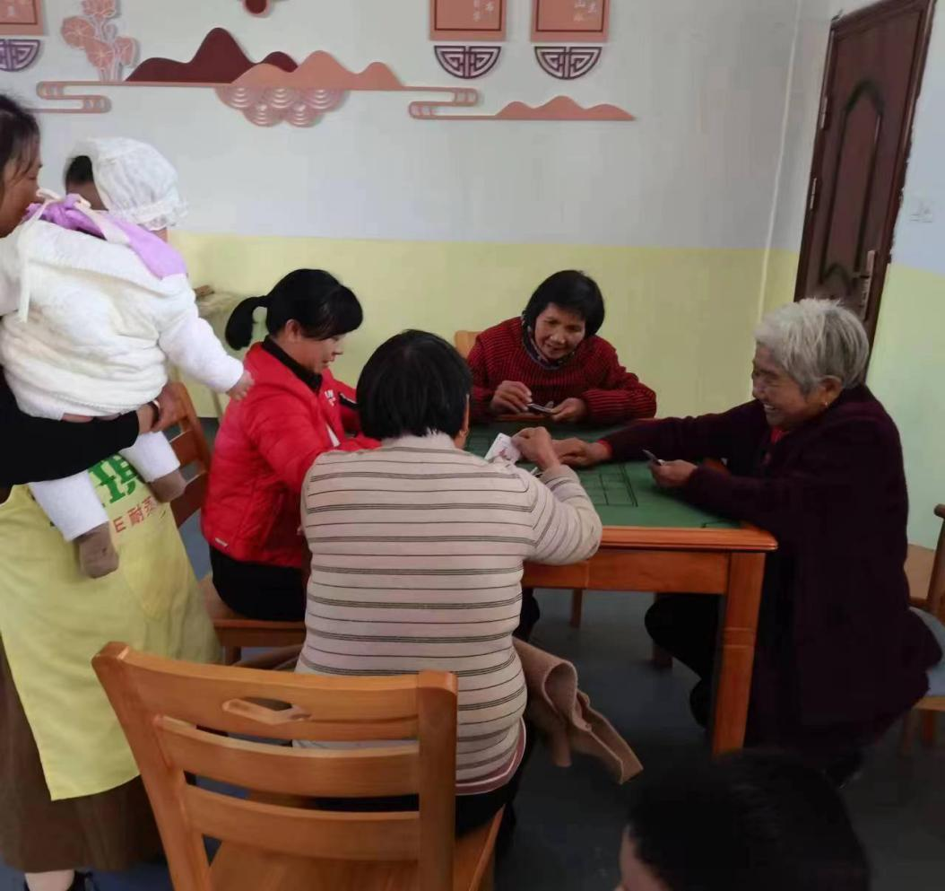 “自从村里把闲置的小学改造成‘一老一小幸福院’后,我们经常带小孩来这里玩游戏,看课外书。闲暇时,还能和村里其他老人一起下棋,坐着聊天,很是热闹。”斗楼村村民潘发先开心地说。