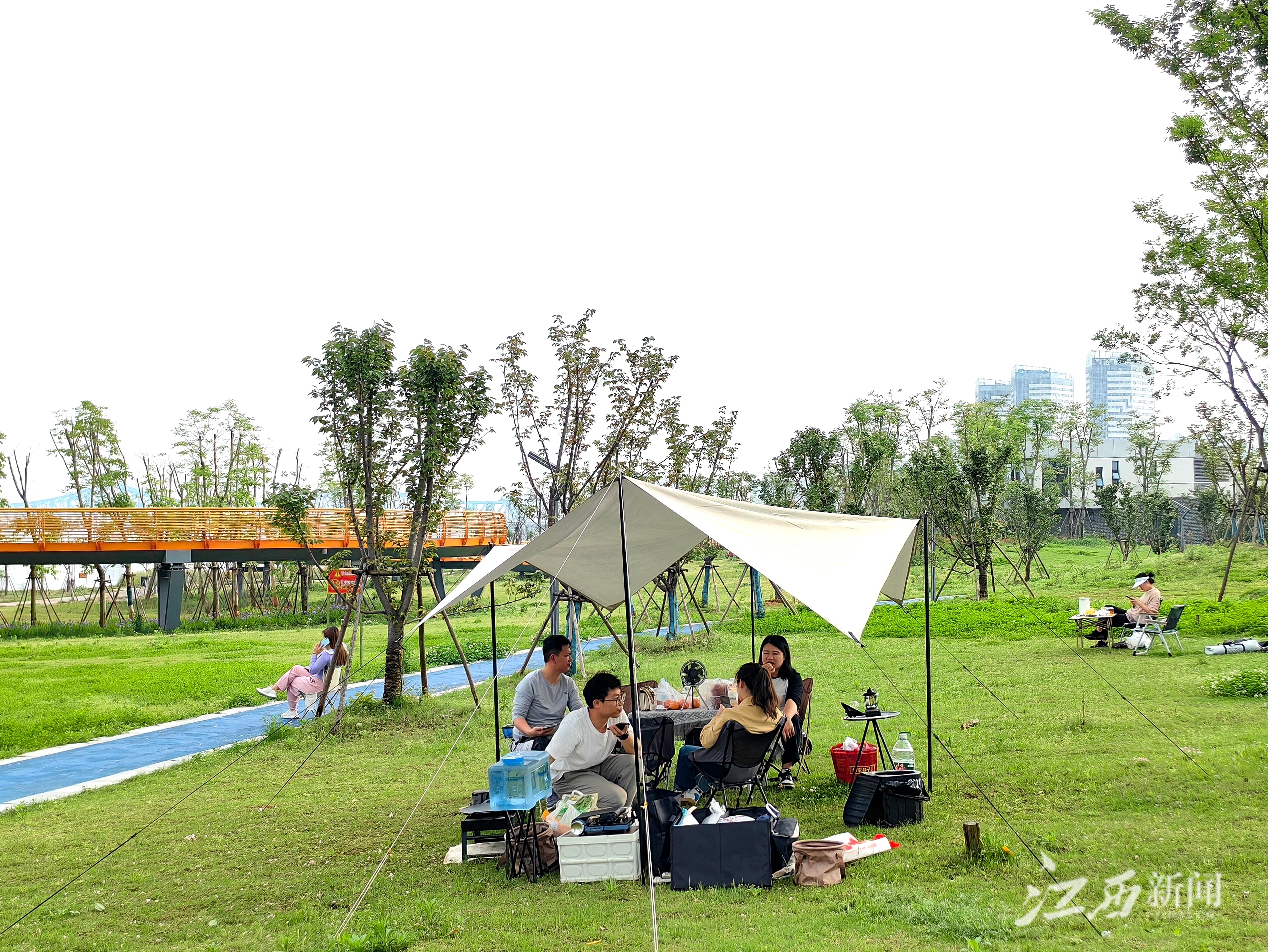 江西新闻客户端讯 (江西日报全媒体记者蔡铖歌)4月14日,雨过空气清新,市民来到南昌市赣江市民公园四期遛娃、健身、露营、拍照,享受愉快的周末。