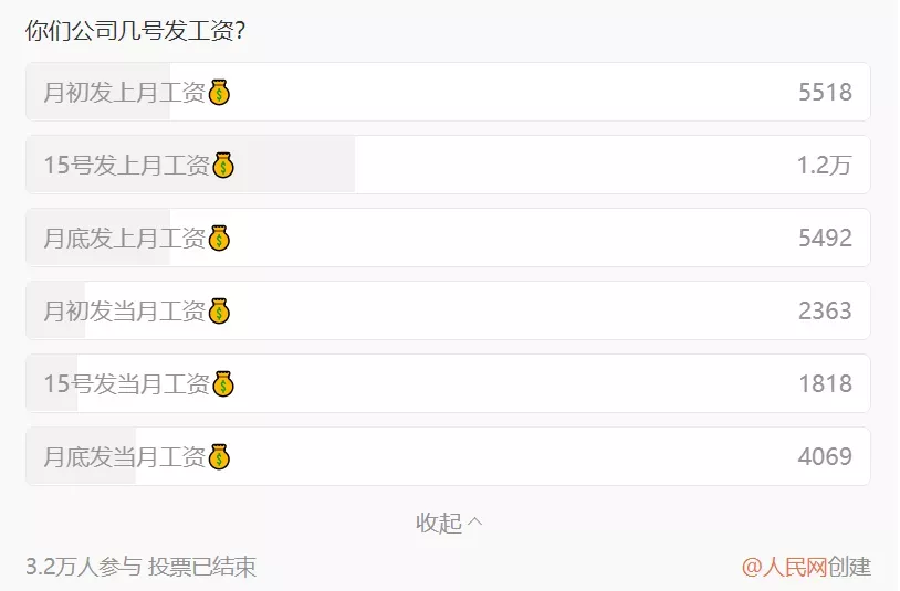 “15号发上月工资”的选项亦遥遥领先