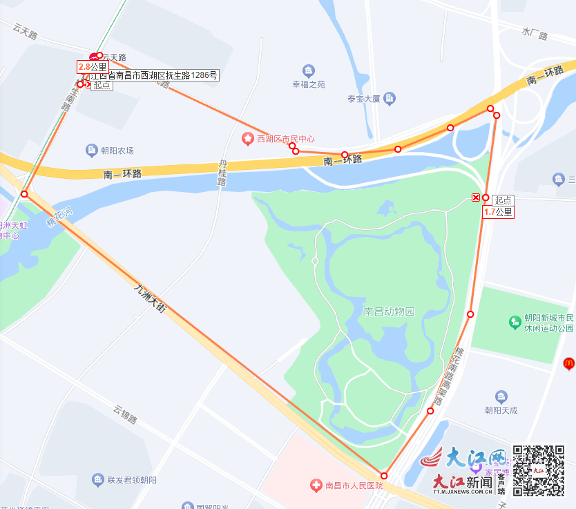 上行:云天路地铁站(4号出口)—云天路—桃花南路—南昌动物园东门。
